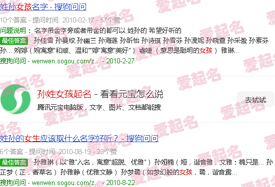 关于“给孙姓女孩命名”的内容。