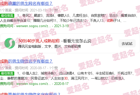 关于“30-40岁男性的成熟昵称”