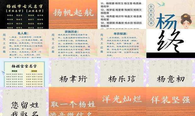 杨姓名:出众,百姓中龙凤的男孩和女孩名字,全都。