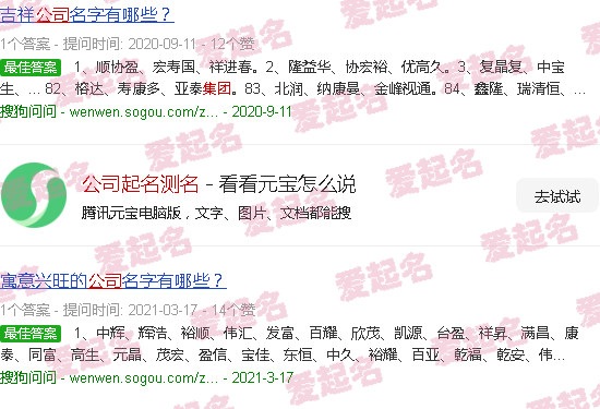 每家公司都像自己的孩子一样从小发展到大。因此,当一家公司刚刚起步时,它会希望使用一个好的词作为公司名称。如吉祥词的使用、大气词的运用、