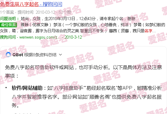 关于“免费八字姓名命名”的内容。