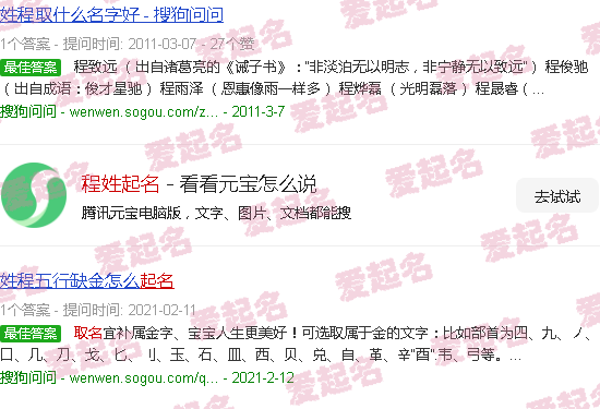 关于“程姓命名”的内容。