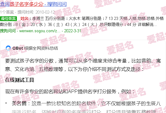 关于“测试孩子名字多少分”的内容。