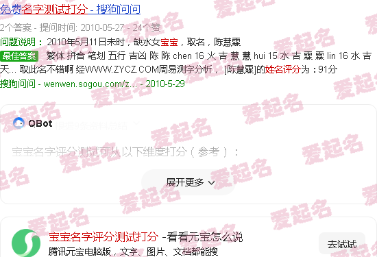 关于“宝宝名字评分测试”的内容。
