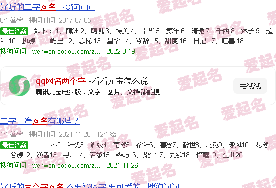 关于“QQ网名两个字”的内容。