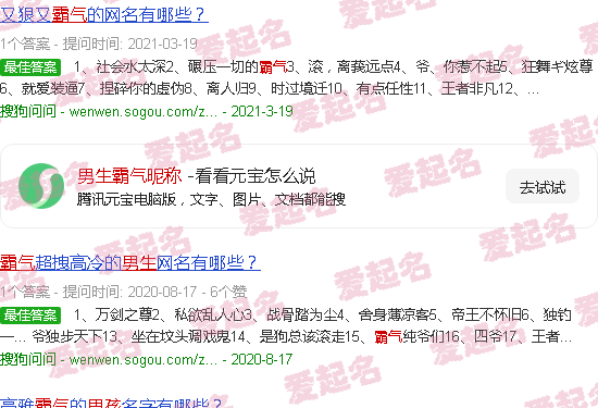 关于《男生霸气昵称》内容。