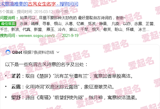 文章声明:以上内容(如有图片或视频在内)除非注明,否则均为爱起名原创文章,转载或复制请以超链接形式并注明出处。