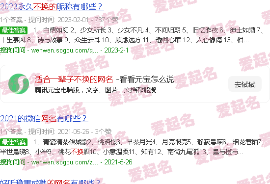 关于“适合一生的网名”的内容。