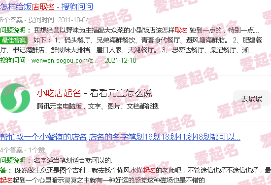 关于“小吃店名称”的内容。