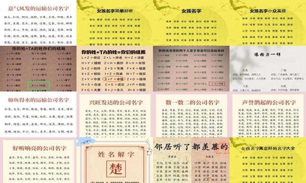 根据诗经、国学、诗词歌赋五个维度,综合名称含义、名称节奏、文化五行、性别匹配、字形笔画,综合高分名称。它还提供了预期的命名,根据不同的爱好、兴趣、含义以及不同的名字来源,你可以想出各种丰富多彩、新颖的名字。命名大师集公司命名、公司名称测试、名称解决方案、