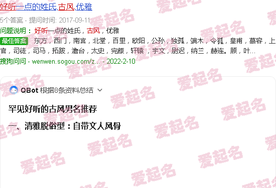 文章声明:以上内容(如有图片或视频在内)除非注明,否则均为爱起名原创文章,转载或复制请以超链接形式并注明出处。