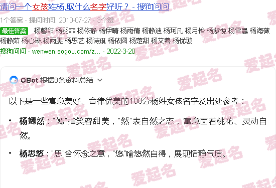 关于“杨姓女孩名字100分”的内容。