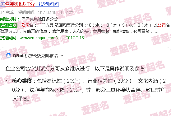 关于“企业公司名称测试评分”的内容。