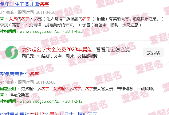 关于《少女名字百科免费2023兔》内容。