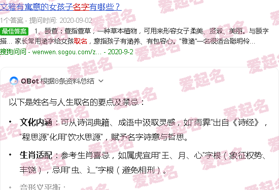 文章声明:以上内容(如有图片或视频在内)除非注明,否则均为爱起名原创文章,转载或复制请以超链接形式并注明出处。