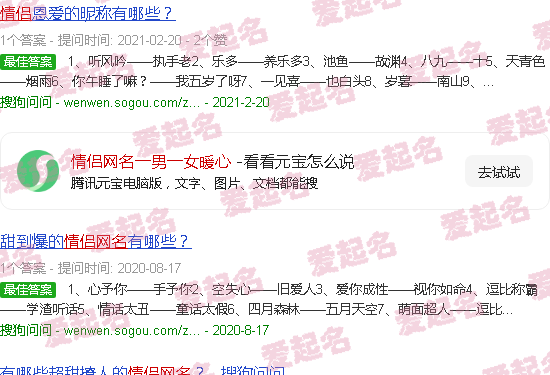 关于《情侣网名:一男一女暖心》内容。