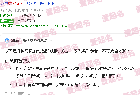 关于“爱名配对”的内容。