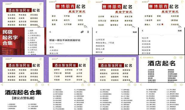 酒店名称可以结合几个方面作为参考:酒店的品牌,如果是加盟酒店,或者酒店由较知名的酒店管理经营,优先展示这些现有的品牌信息,然后酌情添加酒店名称后缀。酒店的地理位置与风土人情,根据酒店当地特色:著名的旅游景点、著名的风俗、著名的特产和美食,找出最具代表性的三个名词,还可以列出这些名词的古称,方便参考。酒店自身特色,如酒店自身的温泉、花园、水疗等特色建筑或服务,筛选较多。
