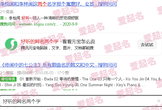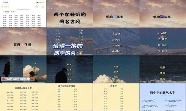 关于《好网名的两个字》内容。