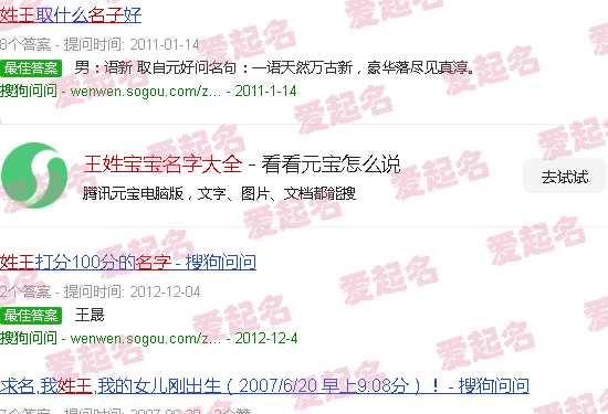 关于《王姓婴儿名字全表》的内容。