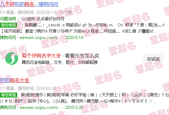 关于《网红好名字全集》内容。