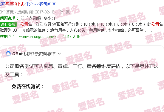 公司名称:阳阳皮具笔画和五行分别为:10(水)10(水)5(水)8(木)这个公司名称是33,其隐含的信息是:将,人将败,善用智慧,能谨慎下手,就会兴旺。