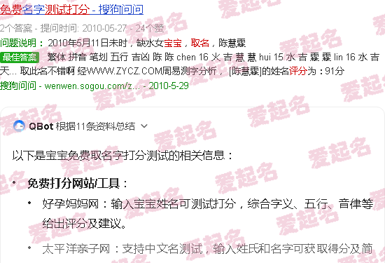 关于“免费婴儿名字评分测试”的内容。