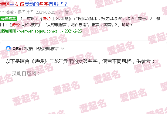 关于《诗经龙年取名女孩、婴儿名》内容。