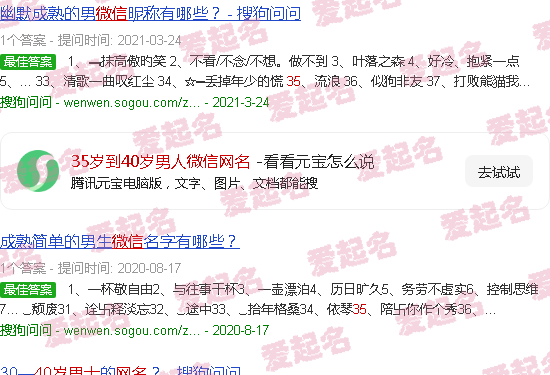 关于“35岁至40岁男性微信网名”内容。