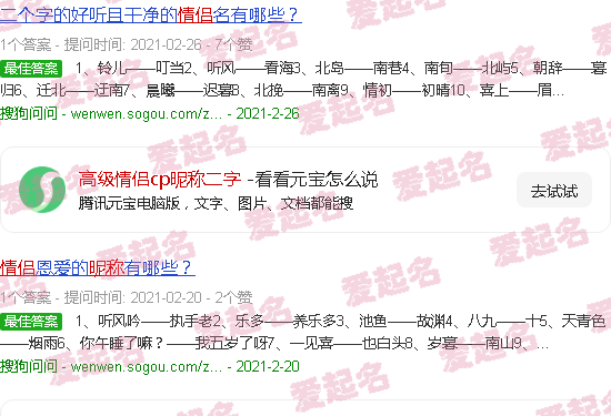 情侣网名。