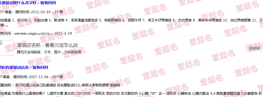 关于“服装店名称”的内容。