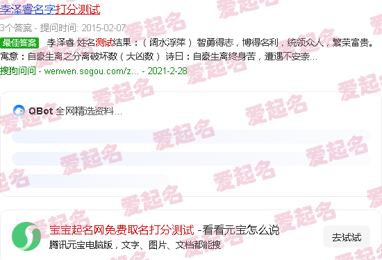 关于“宝宝命名网免费姓名评分测试”的内容。