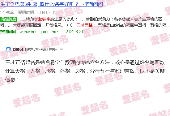 关于“三才五格命名”内容。