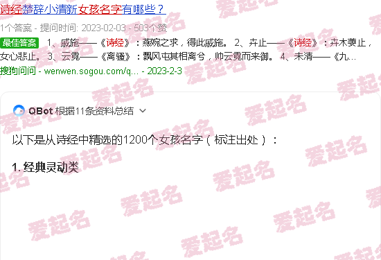 关于《诗经》中的1200个女孩名字的内容。