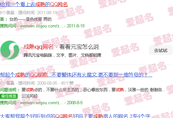 关于“成熟QQ网名”的内容。