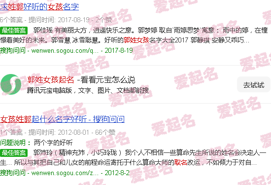 关于《为郭姓女孩取名》的内容。
