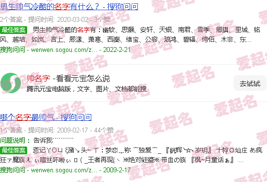 哪个名字最帅。