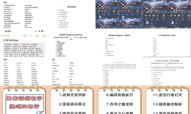王者荣耀游戏名称大全男孩。