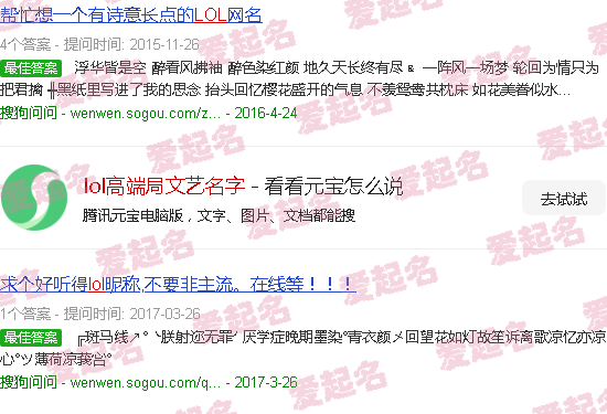 关于《LOL高端局文艺名称》的内容。