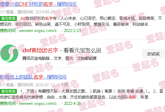 想要一些DNF好听的名字。