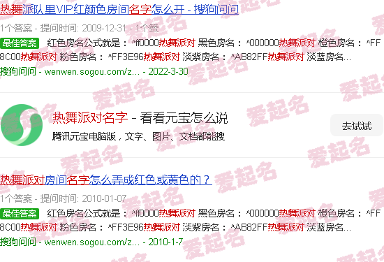 红色房间名称的公式为:^NoDanceParty黑色房间名称:^NoDanceParty橙色房间名称:^NoDanceParty粉红色房间名称:^NoDanceParty浅紫色房间名称:^NoDanceParty浅蓝色房间名称。