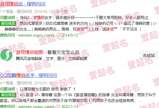 询问一对的游戏屏幕名称,不要有符号,每个单词两个。应该善于倾听并有意义感,例如:小风。
