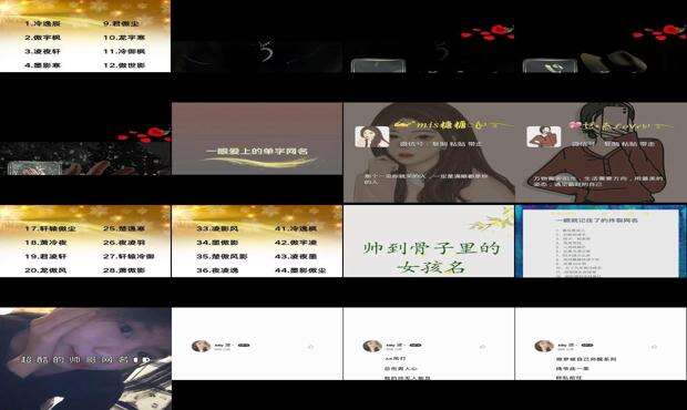 1、°…巷子里的女流氓-2,▲_鹿萌萌〆3,闪闪发光i4,收起你无辜的表情゙5,花落在冰上↘6,手牵手到世界尽头7,来到圈子8,小奶宝我想爱得更爱。