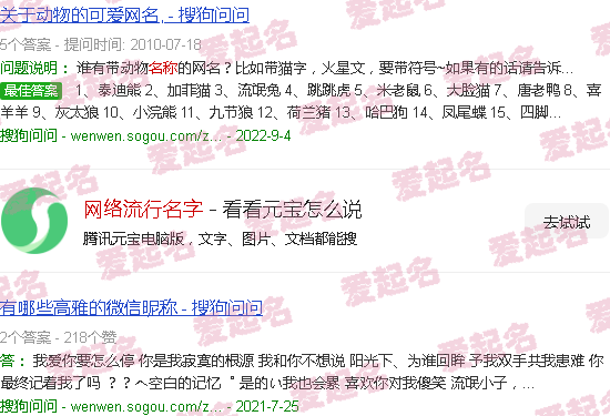关于“互联网上的流行名称”的内容。