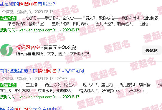 一对寻求爱情和感情的夫妇的网名。
