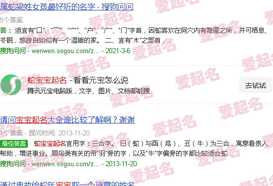 关于“蛇宝宝名字”的内容。