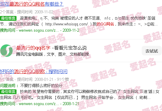 关于“最受欢迎的QQ名称”的内容。