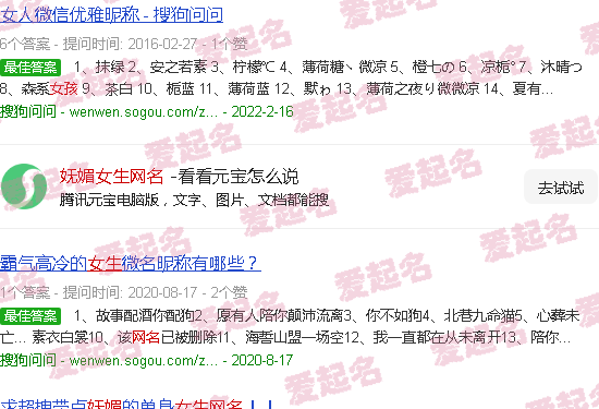为女孩寻找一大堆可爱的网名。
