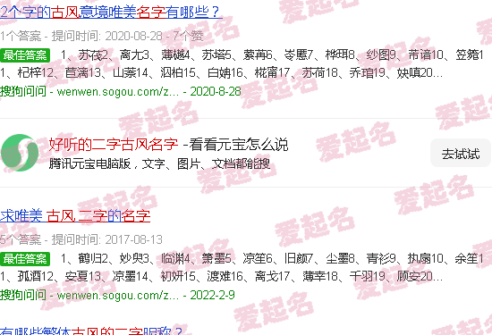 关于“漂亮的双字古名”的内容。