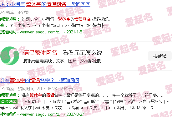 关于“情侣的传统网名”的内容。